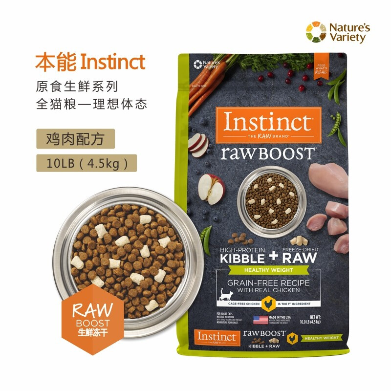 Instinct生鲜本能 经典无谷鸡肉 猫粮高蛋白0谷物高适【含肉量95%】幼猫、成猫专用 健康体态10磅/4.5kg