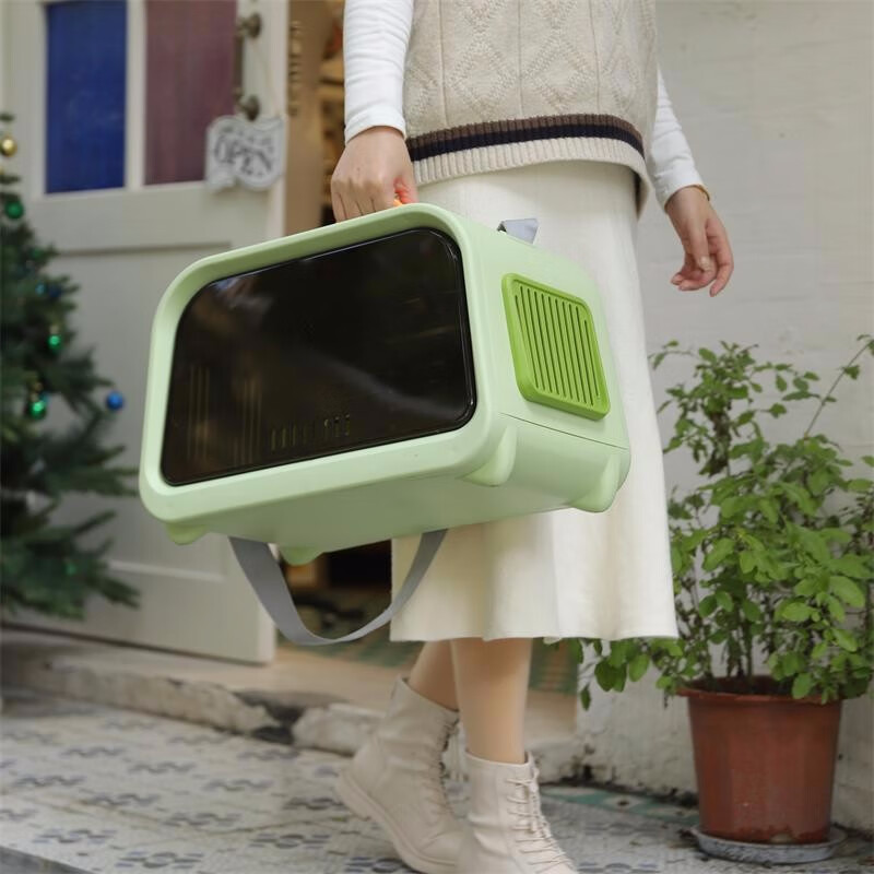 hoopet猫包外出包便携太空舱带温度计宠物透气单肩手提猫咪背包大容量猫 现代绿-带羊羔绒睡垫-自带温湿度计 适用15斤内猫-8斤内狗