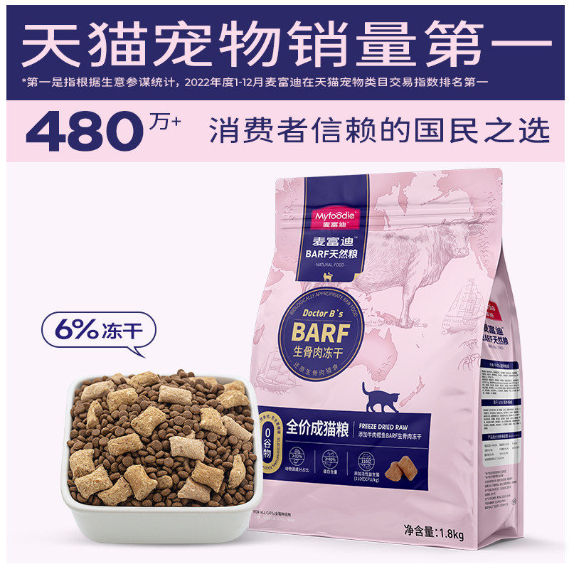 麦富迪barf霸弗猫粮生骨肉冻干100g成猫专用无谷英美短通用全价