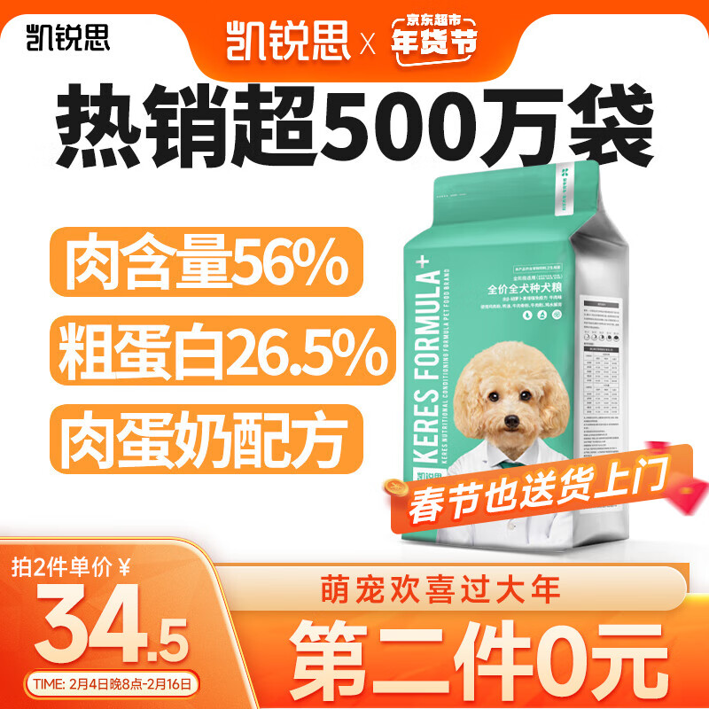 凯锐思泰迪萨摩耶金毛拉布拉多比熊狗粮小型犬幼犬成犬通用型粮 【牛肉味4斤】拍2单件丨34.5