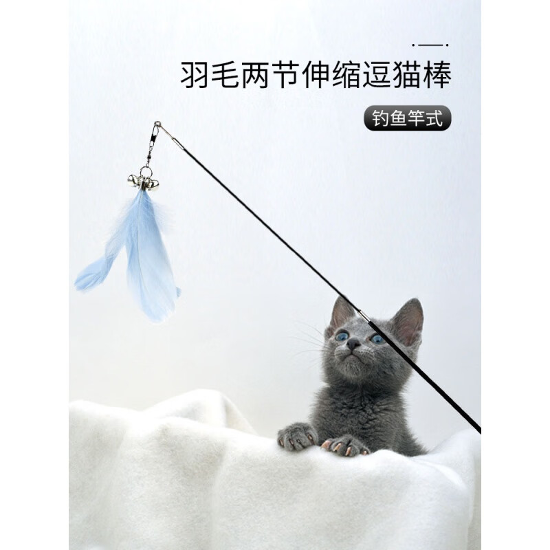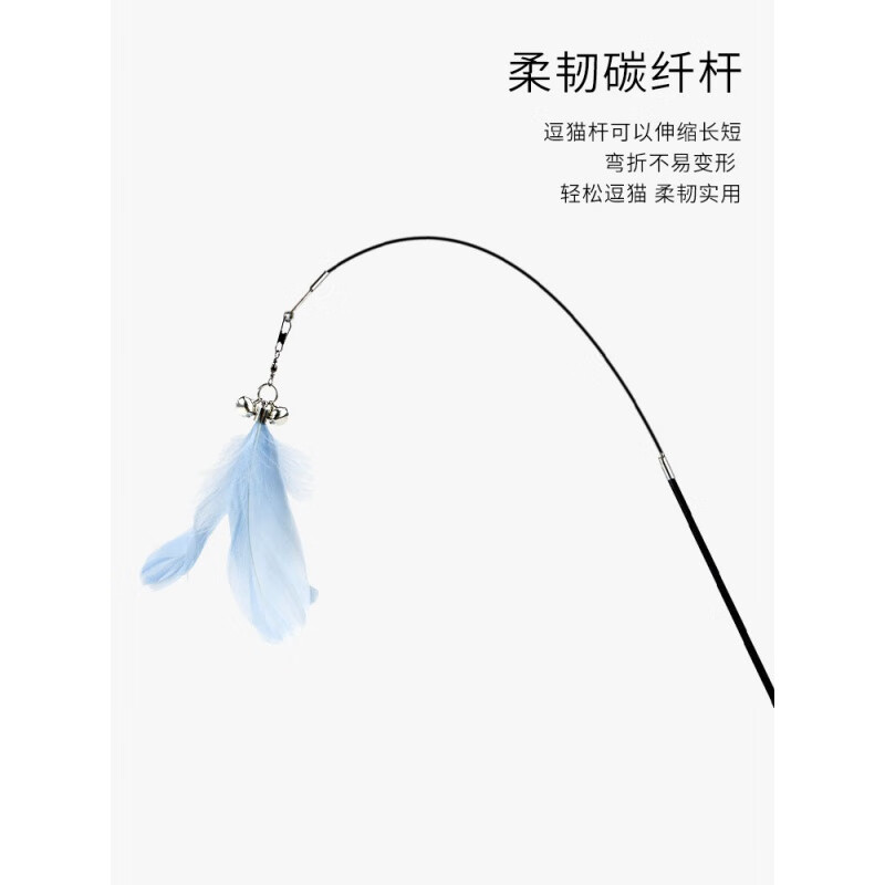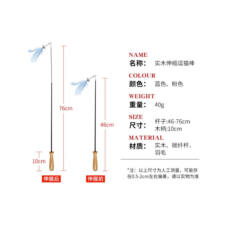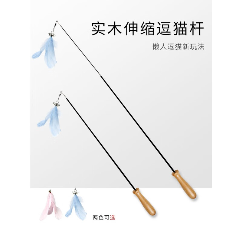 逗猫棒钓鱼竿羽毛铃铛长杆可伸缩仙女实木小猫幼猫逗猫猫玩具用品 粉色