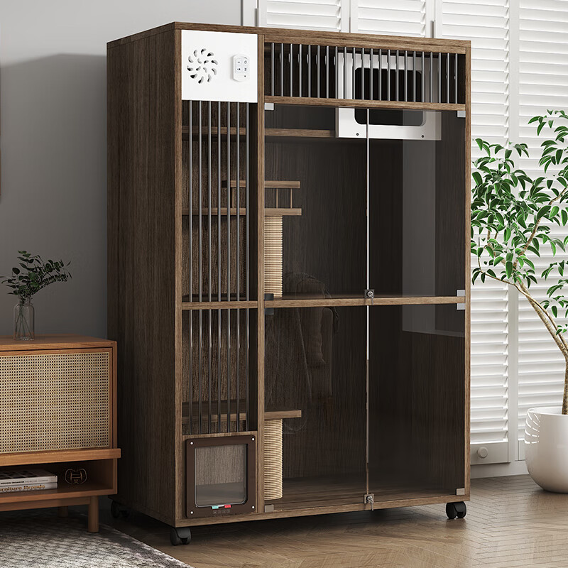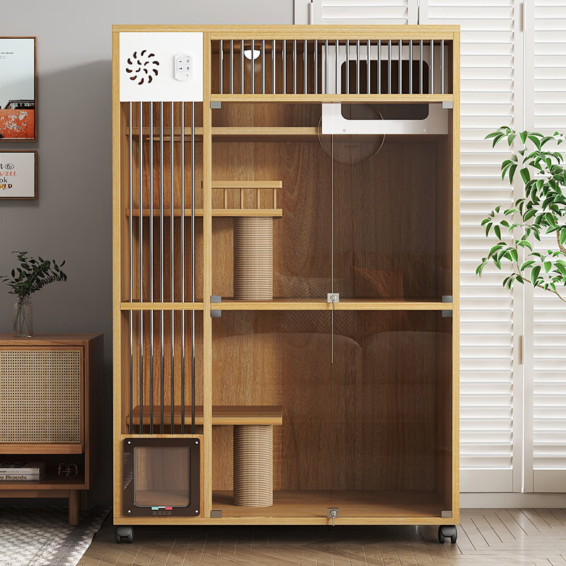 小米城堡猫别墅 木质猫笼双猫 木质猫笼子家用室内猫舍超大自由空间猫柜猫 原木色高150宽110深60 配货到家自行安装