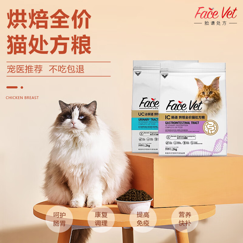 弗莱明【下单即发】脸谱生物猫粮泌尿道腹泻软便血成猫肠道肠炎猫咪全价猫粮 KC肾脏全价猫粮 1.2kg 1包