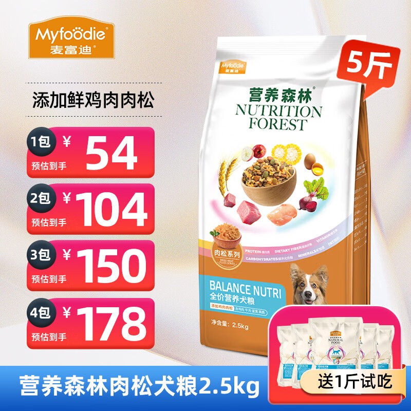 麦富迪(Myfoodie)【厂家直发】狗粮粮营养森林中大小型犬泰迪金毛通用犬粮 全期通用肉松狗粮2.5kg