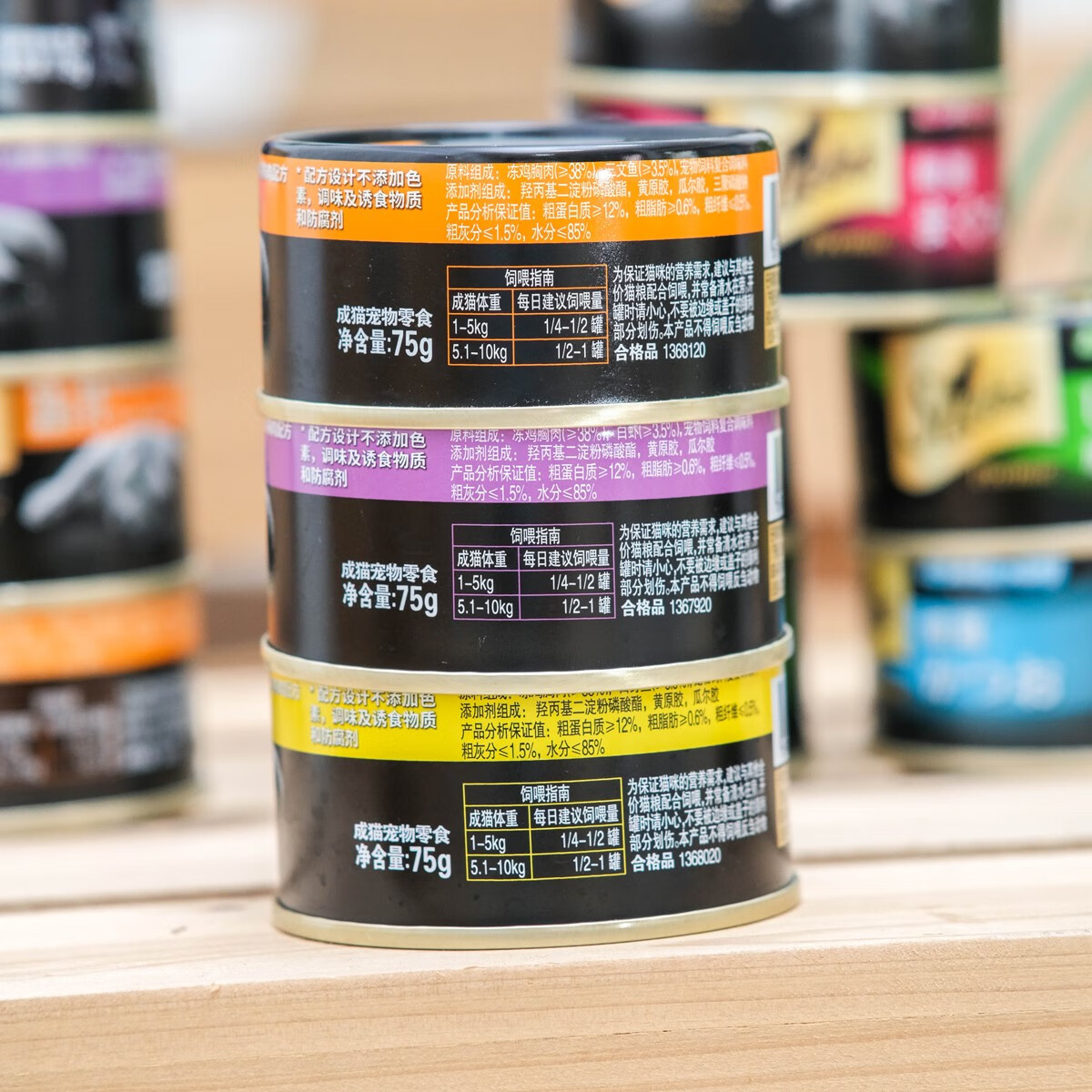 希宝(Sheba)泰国进口希宝猫罐头24罐整箱白肉黑罐猫咪湿粮猫零食鸡胸肉 【黑罐75g】鲣鱼-24罐 24罐