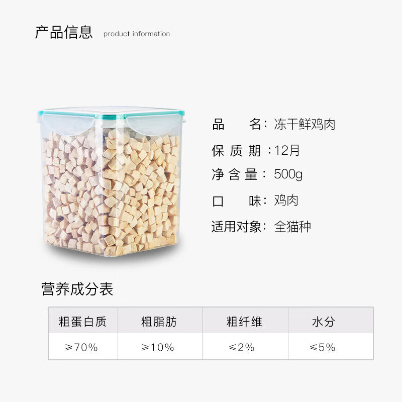 醇粹(Purich)冻干鸡肉粒500g猫咪零食营养增肥发腮宠物狗成幼猫粮鸡胸肉全母猫 以上 鸡肉