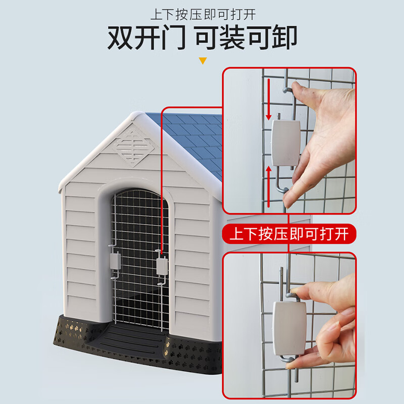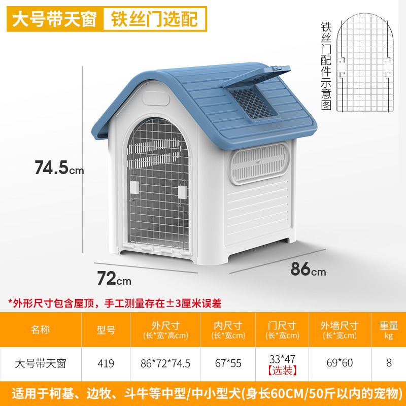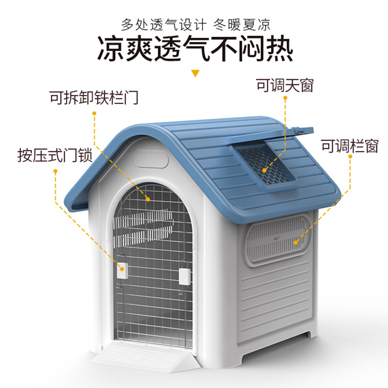 疯狂小狗 狗狗窝户外防雨室外房子大型犬保暖狗屋宠物四季通用品狗笼【大号有天窗带门】蓝色(建议60斤内)