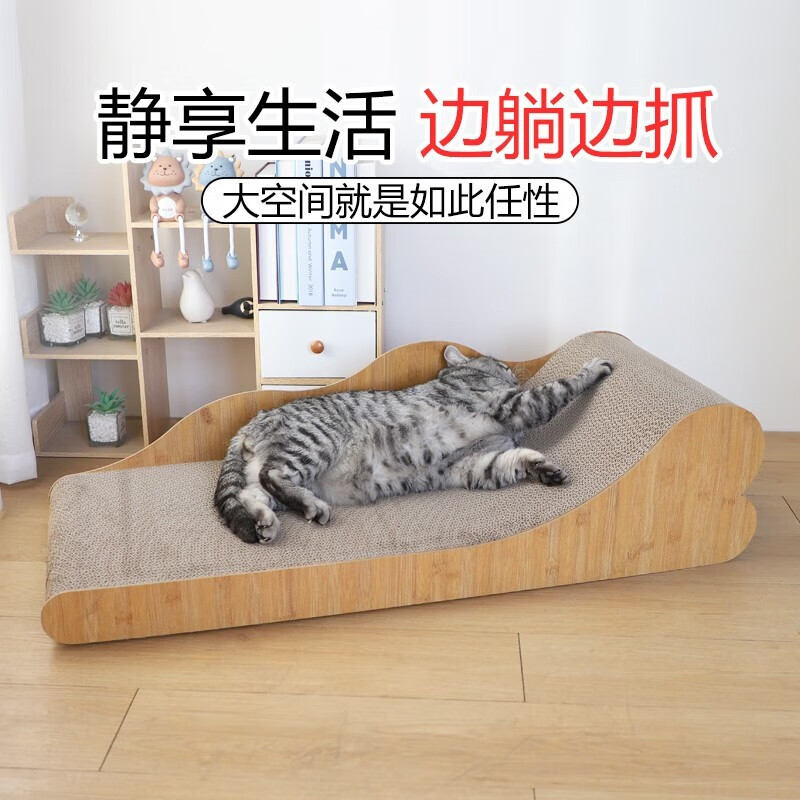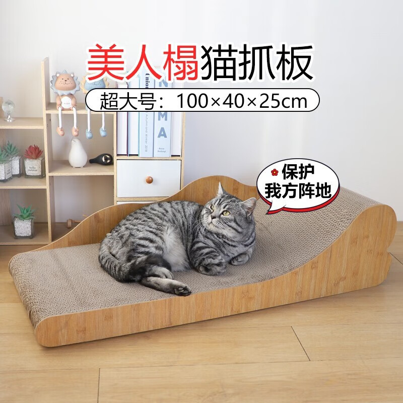 迪熊先生 猫抓板 磨爪器猫爪板瓦楞纸 猫咪玩具磨抓板猫用品 贵妃榻超大号猫抓板(100*40*25cm)
