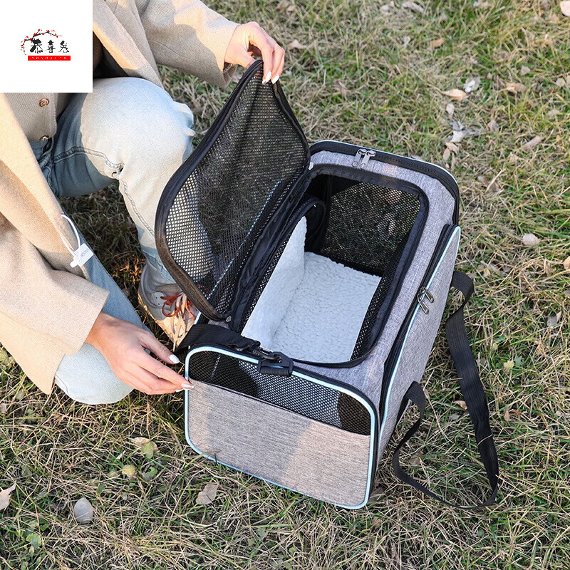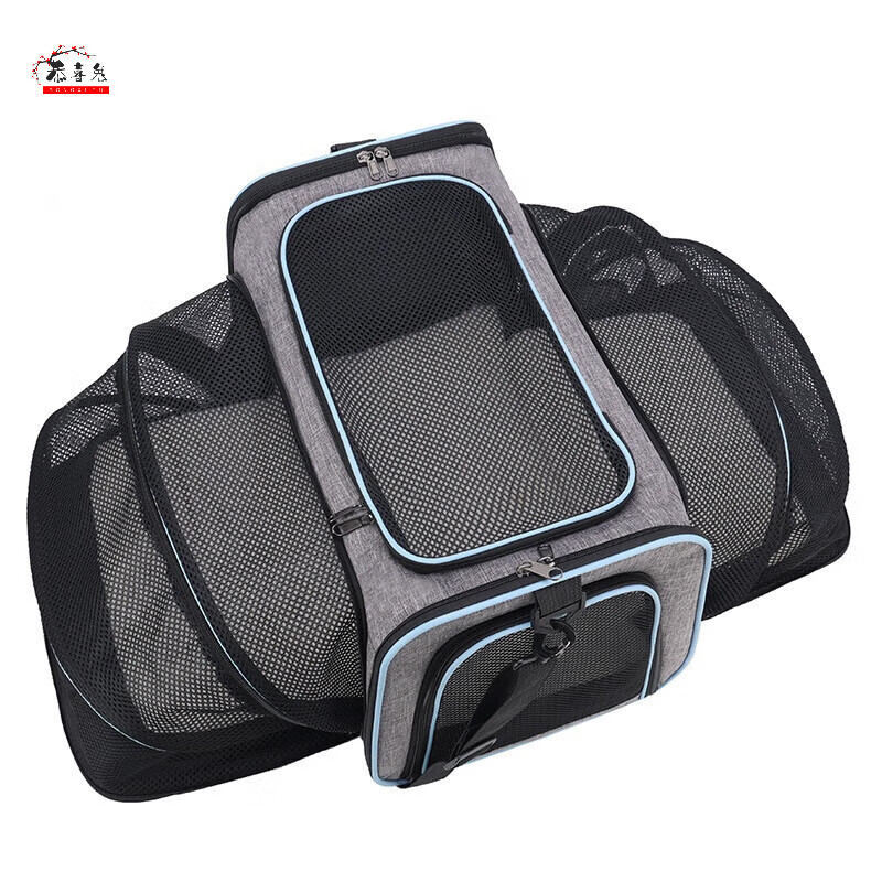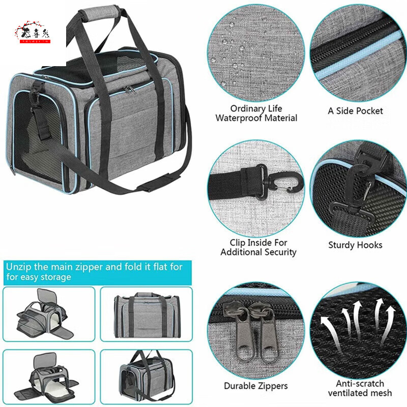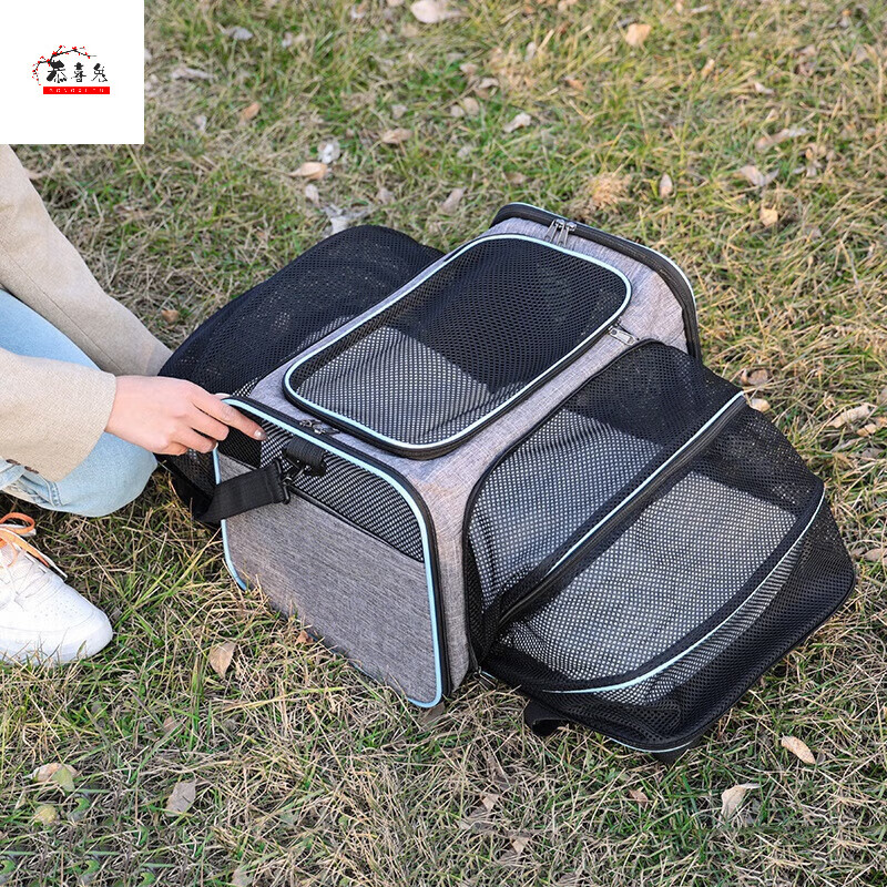 乖可爱(GUAIKEAI)新款宠物包透气双拓展手提猫包外出便携可扩展狗包轻便折叠 黑色配红边 小号(S:40cm*25cm*25cm)
