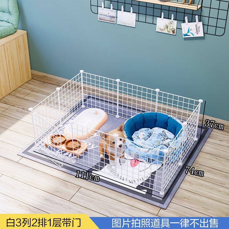 居斯美家用柯基宠物小型犬狗狗围栏栅栏室内防越狱泰迪加高隔离栏狗笼子贵宾铁网防护栏全景通透训练上厕所栏 白色3列2排1层带门