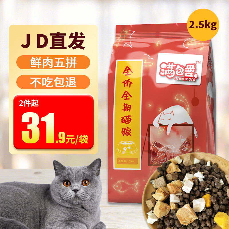 弗兰士猫粮成猫幼猫全阶段 通用型均衡营养全价天然猫粮 满包爱五拼猫粮2.5kg