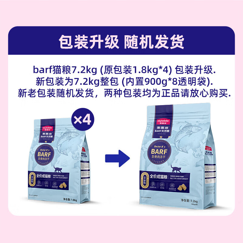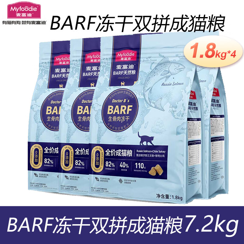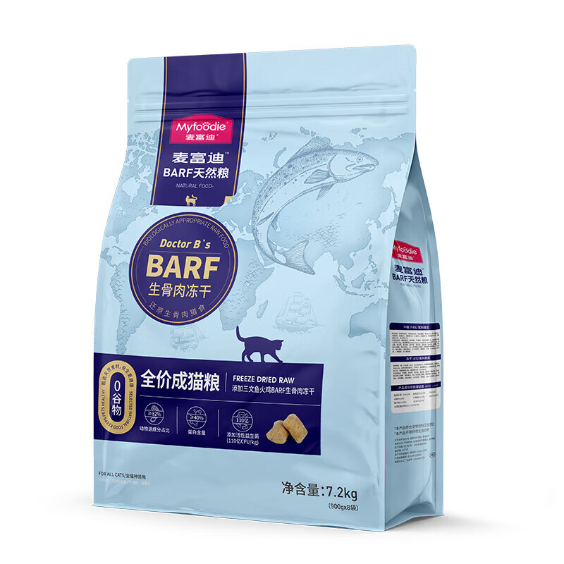 麦富迪(Myfoodie)麦富迪barf猫粮1.8kG冻干生骨肉天然粮营养高蛋白通用全价猫粮 三文鱼火鸡成猫7.2kg