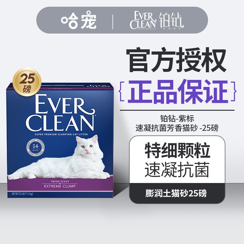 铂钻(EverClean)美国原装进口猫砂25磅蓝白标膨润土绿标蓝标红标猫咪无尘猫沙除臭 速凝抗菌芳香猫砂25磅(紫标)