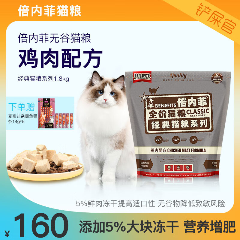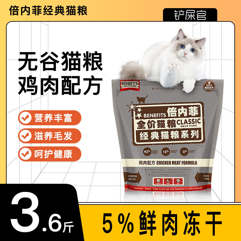 倍内菲猫粮全价无谷鲜肉冻干生骨肉成猫幼猫猫粮通用金标宠物猫咪主粮 经典鸡肉猫粮1.8kg-试吃包 【防伪可查】