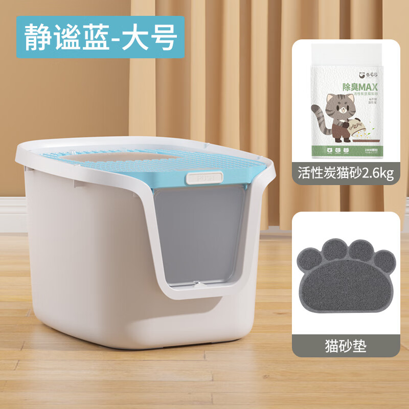 邦可臣 猫砂盆全封闭式超大号防带砂厕所除臭防外溅顶入式特大猫沙盆用品 【14斤豪华套餐】马卡蓝大号 猫砂盆 逗猫棒 猫砂铲 除臭片