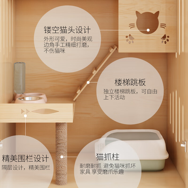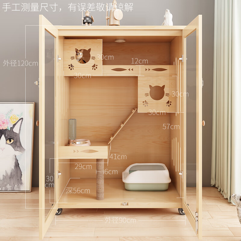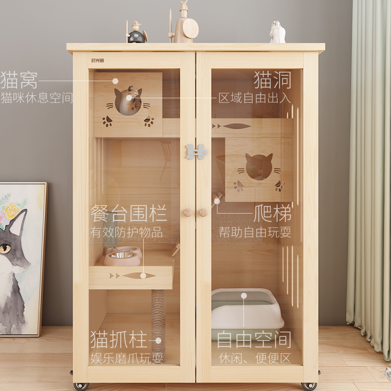 时光圈猫笼猫窝实木猫别墅猫笼子猫柜子猫咪房屋120*90*60型号SM-G1296