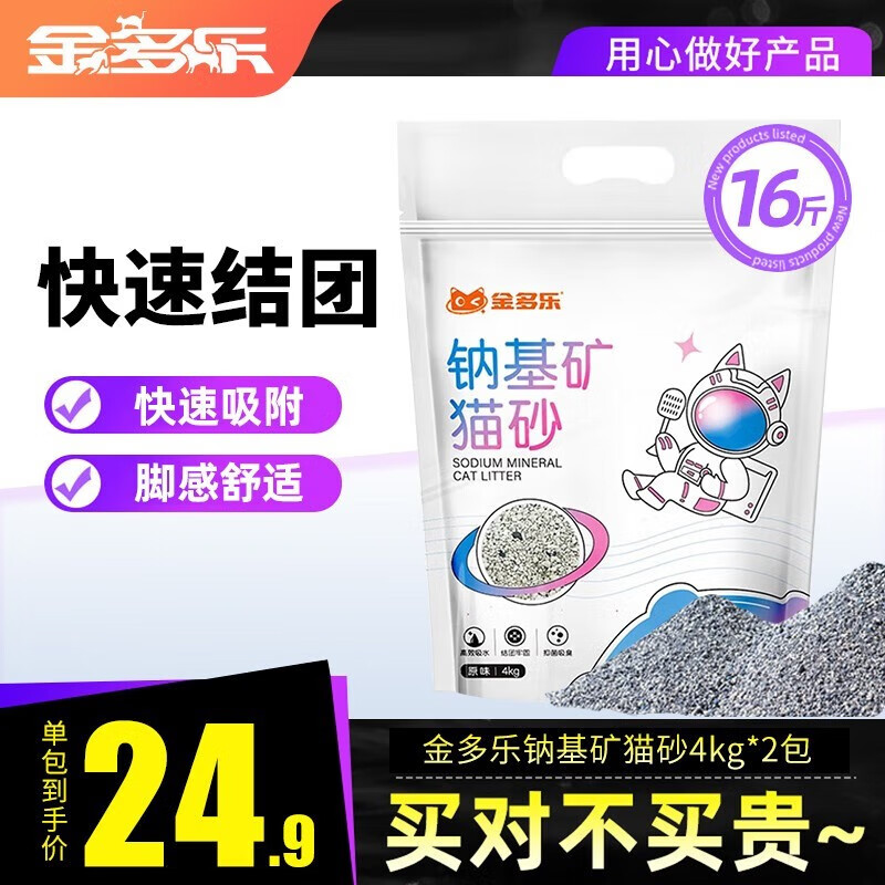 【美国原装进口】蓝标铂钻Ever Clean进口猫砂 猫咪清洁用品 活性炭膨润土成猫幼猫日用品猫沙 国产-金多乐钠基矿砂16斤(发4kg*2袋)