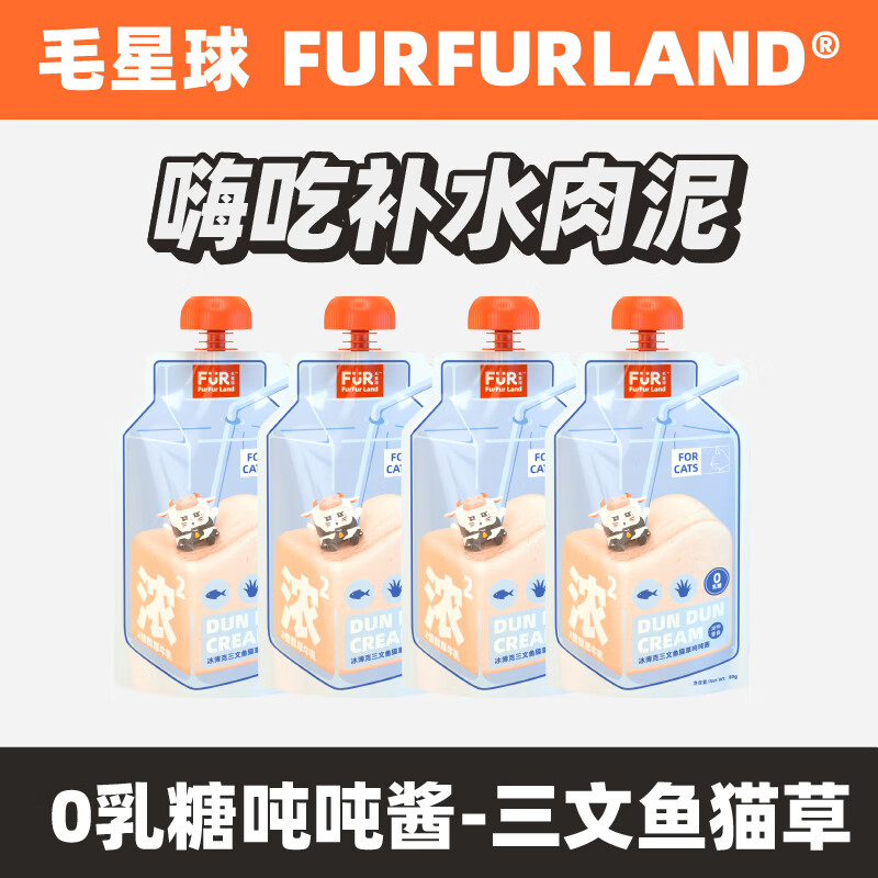 FurFurLand毛星球冰博克吨吨酱猫咪高蛋零食化毛美毛牛乳营养增肥发腮肉泥补水猫条增强免疫力果冻 【化毛排毛】三文鱼猫草80g*4