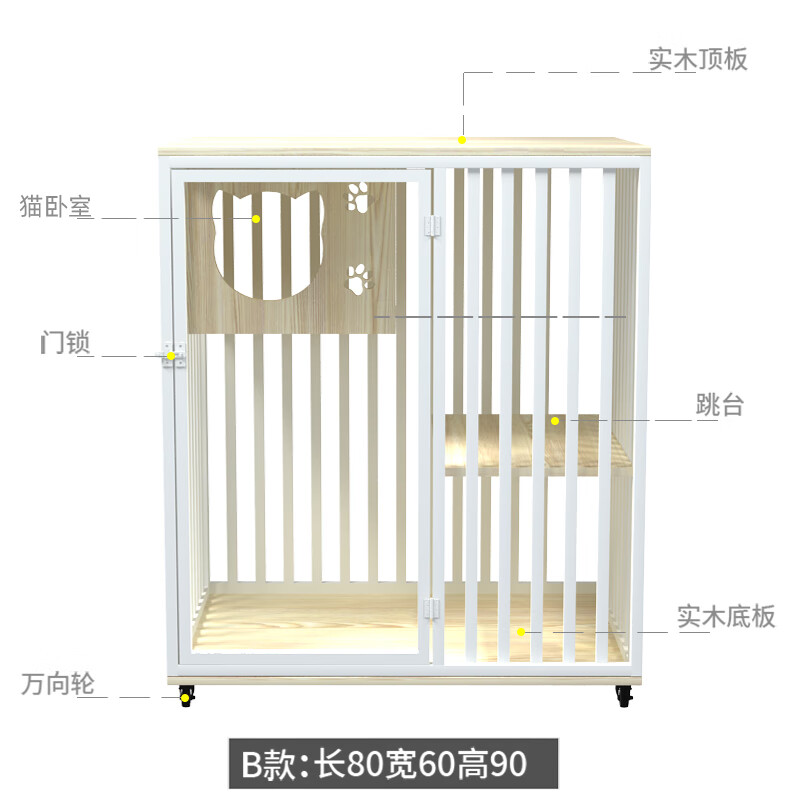 小米城堡木质猫笼子 木质猫笼双猫 猫别墅猫咪房子猫屋猫舍猫窝双层三层超 B款_80*60*90 自己安装