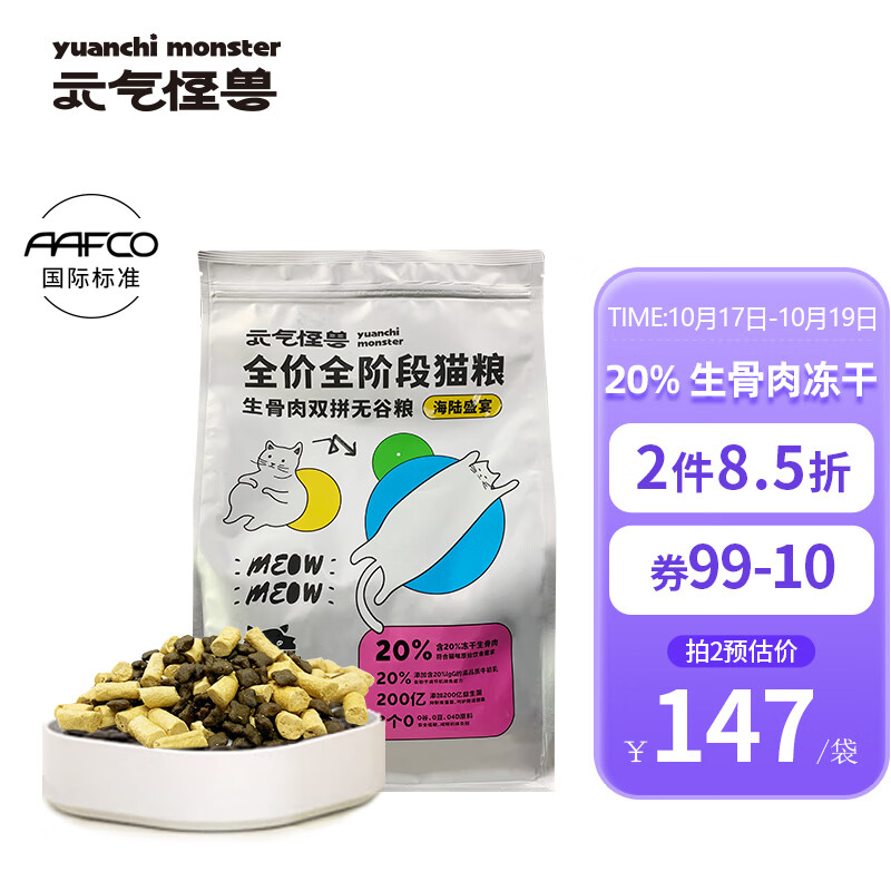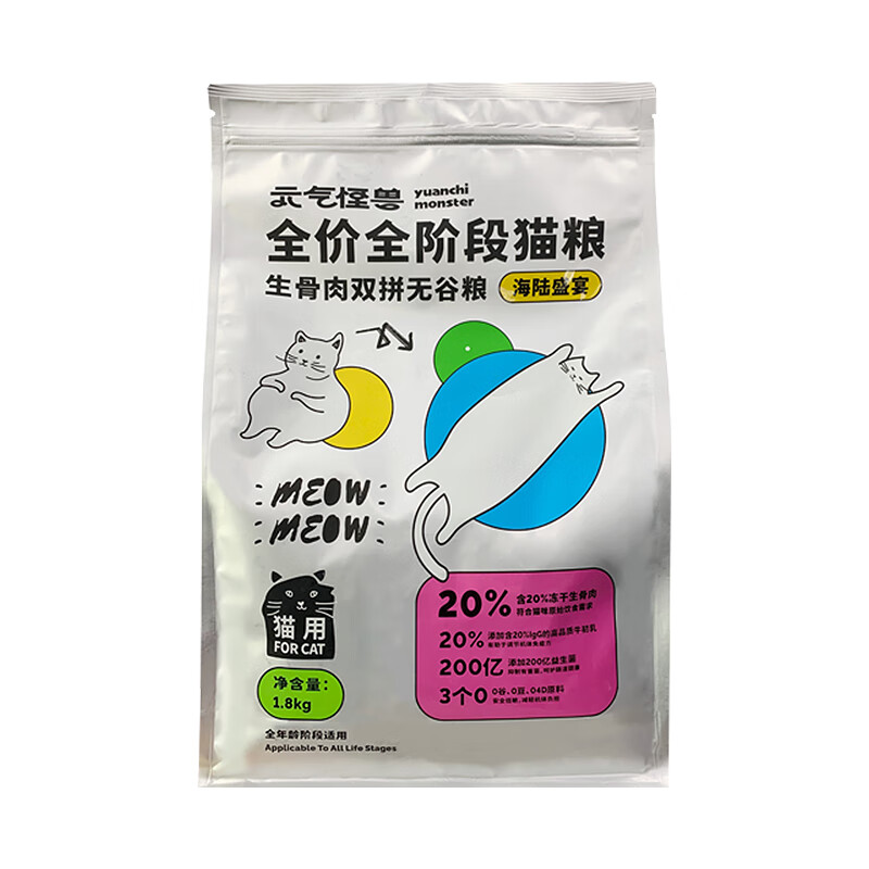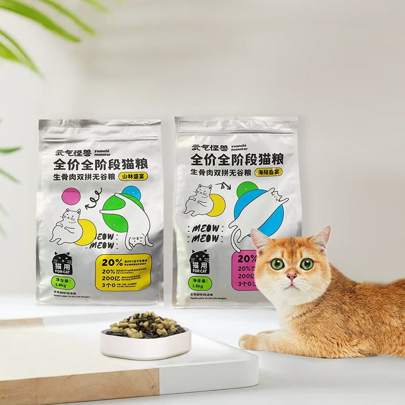 元气怪兽 全价全阶段猫粮生骨肉冻干双拼无谷主粮 海陆盛宴1.8kg 发腮成猫幼猫