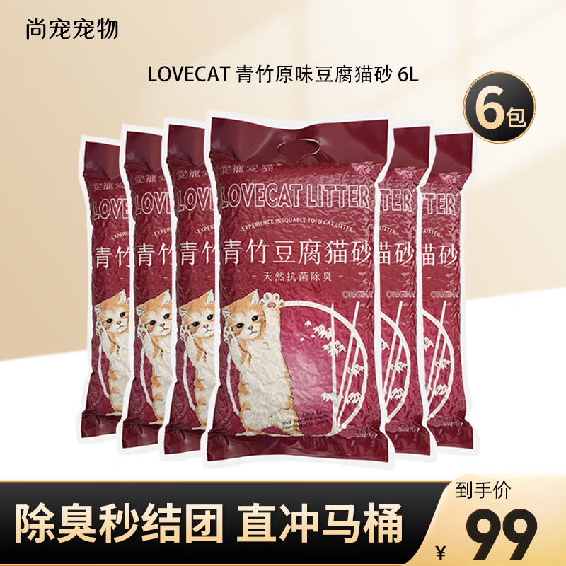 爱宠爱猫猫砂 love cat猫砂 原味绿茶青竹豆腐猫砂除臭无尘易结团可冲马桶 原味青竹豆腐猫砂 5斤*6包