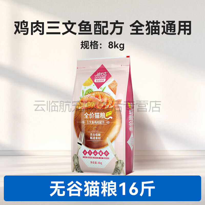 迪尤克猫粮8kg全阶段全价无谷低敏鲜肉果蔬蓝猫成猫幼猫通用16斤 鸡肉三文鱼 8kg