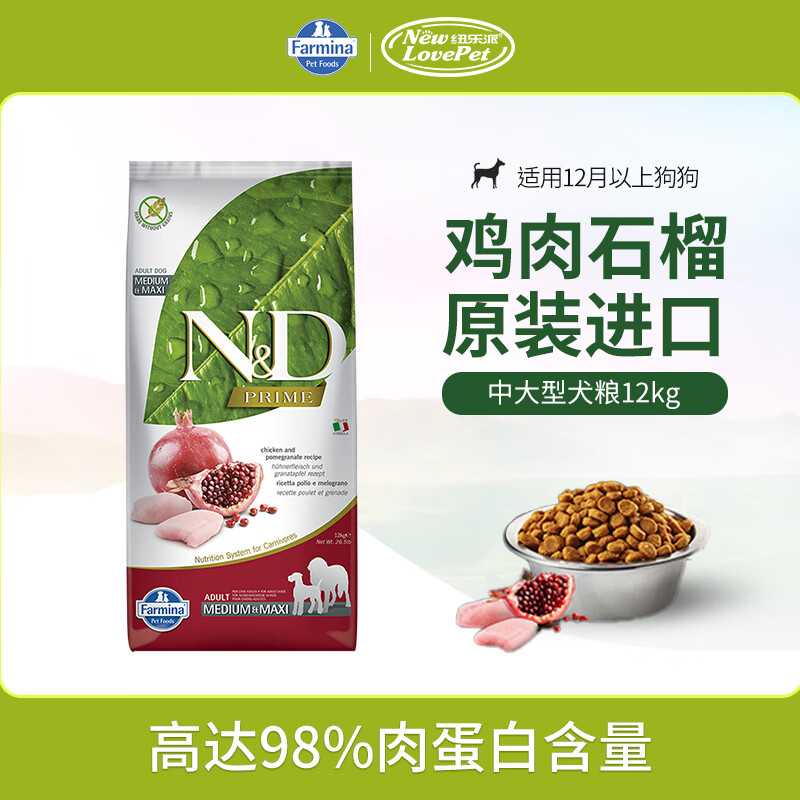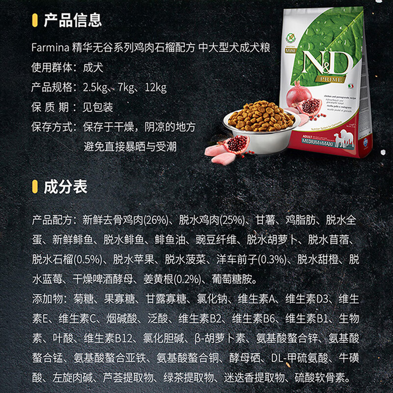 法米娜(Farmina)进口狗粮 成犬粮哈士奇泰迪比熊无谷粮 中大型犬粮|鸡肉石榴12kg