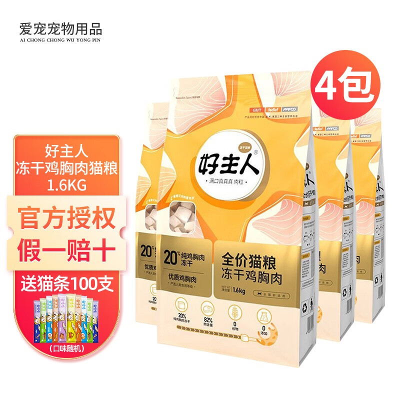好主人(CARE)猫粮2.5kg 金装成猫猫粮幼猫猫粮全价冻干猫粮无谷粮猫干粮猫主粮 冻干双拼猫粮 3.2斤*4包
