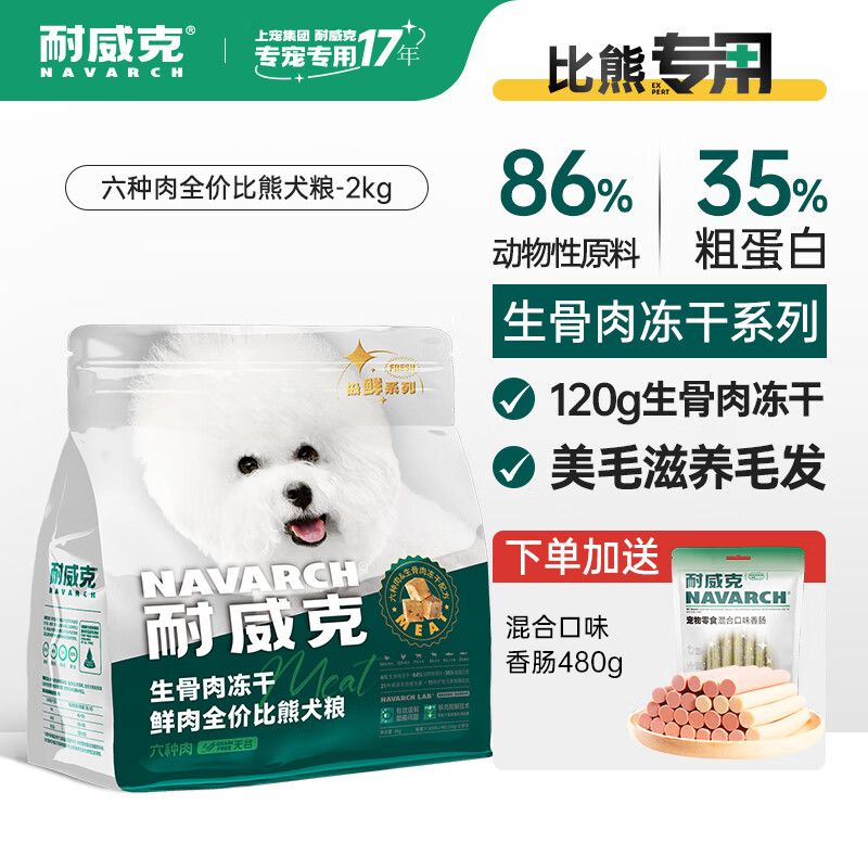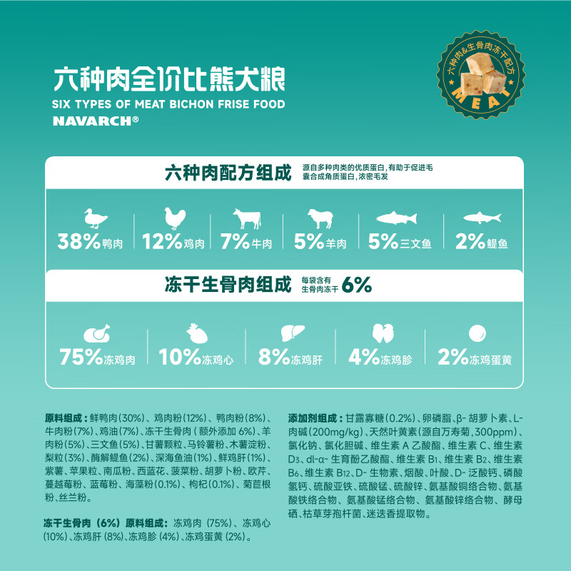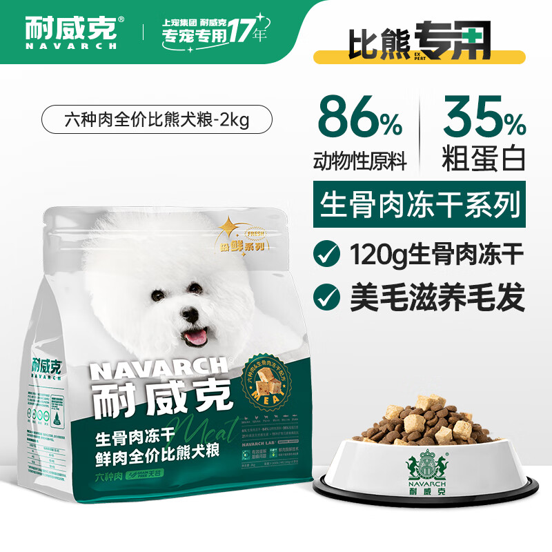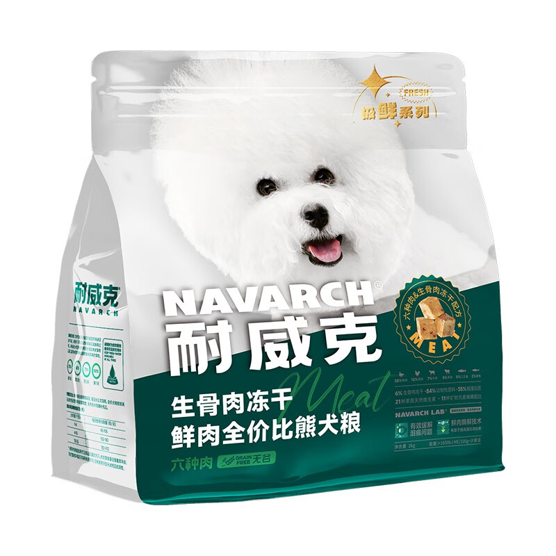 耐威克六种肉狗粮 全期无谷生骨肉冻干粮美毛小型犬中大型犬成犬狗粮 比熊专用4斤丨85%含肉量