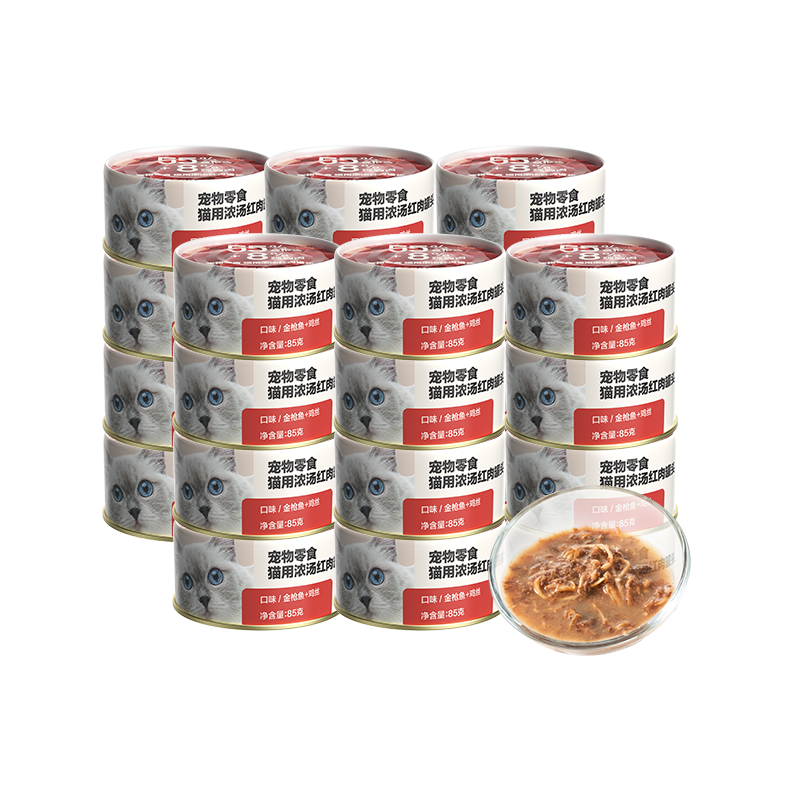 网易严选猫罐头猫咪零食宠物水煮鸡胸肉猫粮猫湿粮浓汤大块白肉罐头 红肉罐金枪鱼鸡丝味85g*24