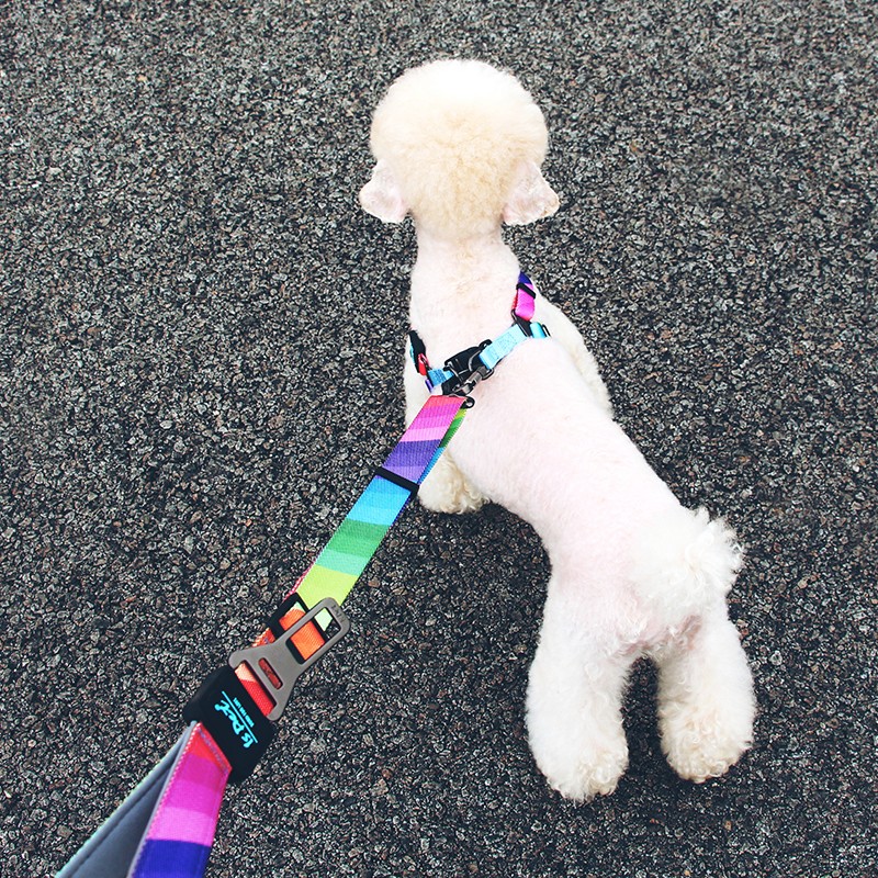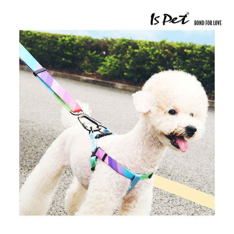ISPET狗绳牵引绳狗链遛狗绳大中小型犬泰迪金毛拉布拉多法斗雪纳瑞 CL0091彩虹(宽1cm建议XS或S码胸背) 通用