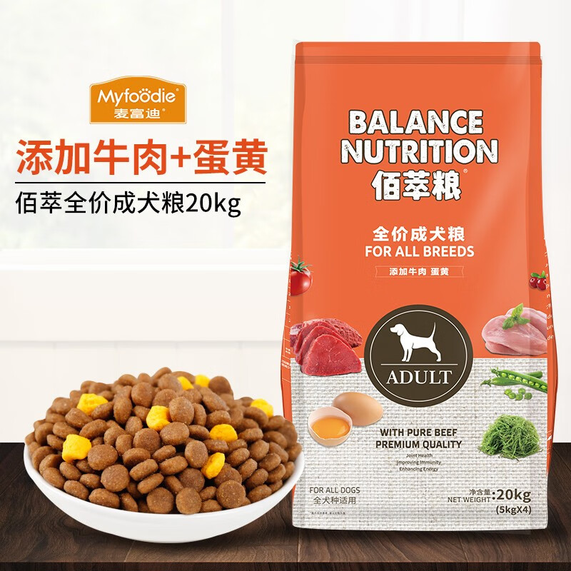 麦富迪(Myfoodie)佰萃狗粮系列全价通用型成犬粮 佰萃成犬牛肉 蛋黄20kg
