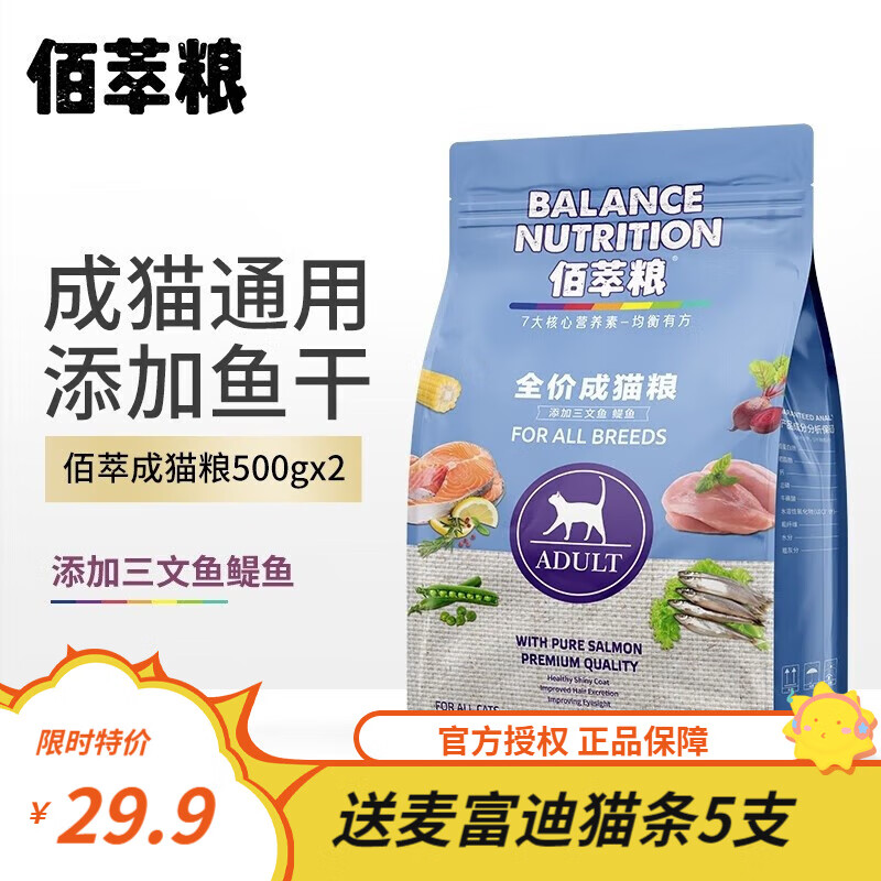麦富迪猫粮佰萃成猫粮幼增肥发腮通用型猫粮猫布偶美短蓝猫猫粮加小鱼干 佰萃成猫粮 500g*2