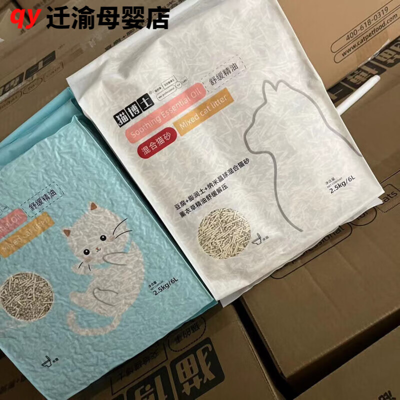 猫博士猫砂混合猫砂膨润土豆腐结团无尘可冲马桶2.5kg/6L*6袋 混合猫砂蓝色包装6L/袋*6包