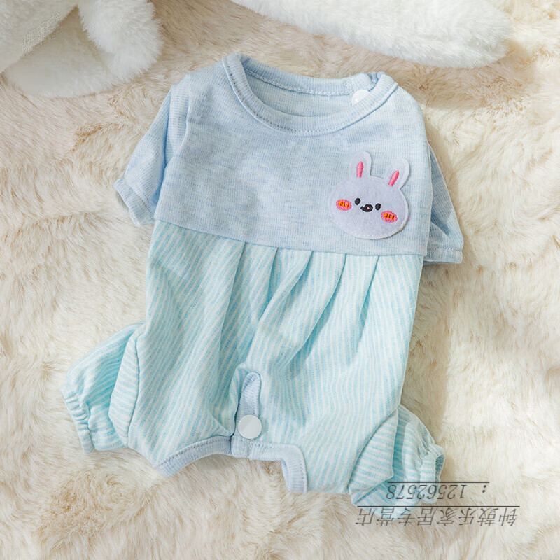 PETIO TOGETHER YOUR PRECIOUS LIFE可爱小猫咪衣服四脚防掉毛布偶幼猫夏季蓝猫猫宠物狗狗家居服薄款 蓝色兔子【包肚款】 L建议体重8-11斤