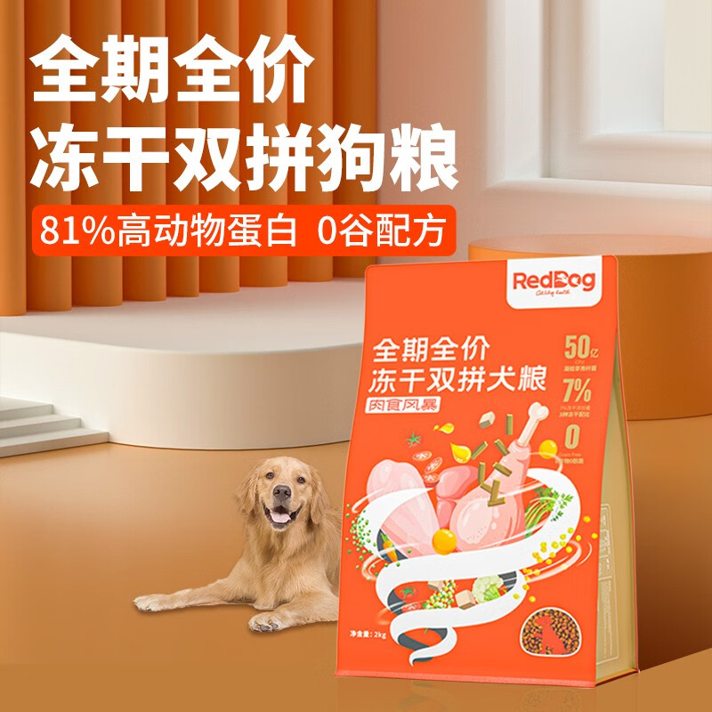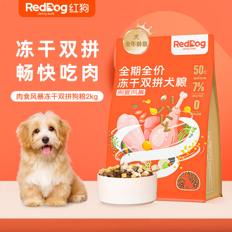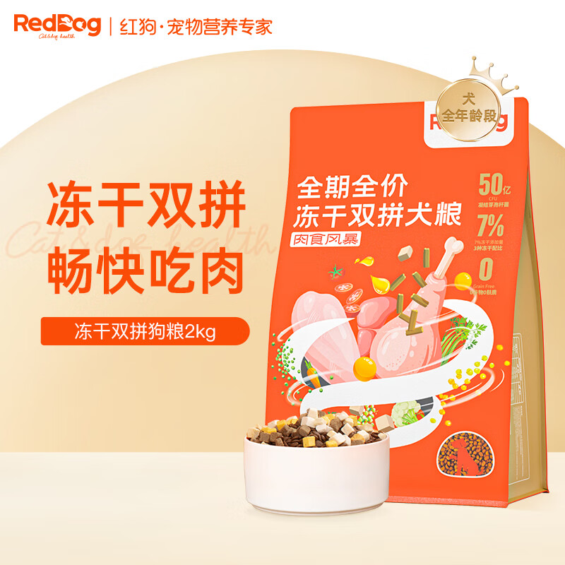 红狗(RedDog)冻干双拼狗粮2kg 全价狗粮狗主粮成犬幼犬狗 益生菌蛋黄冻干 4斤