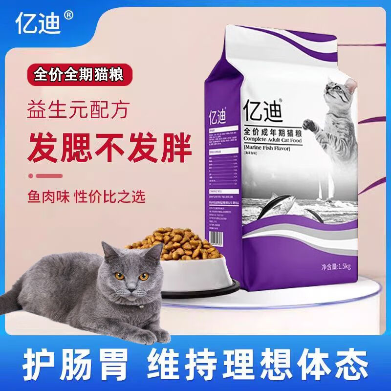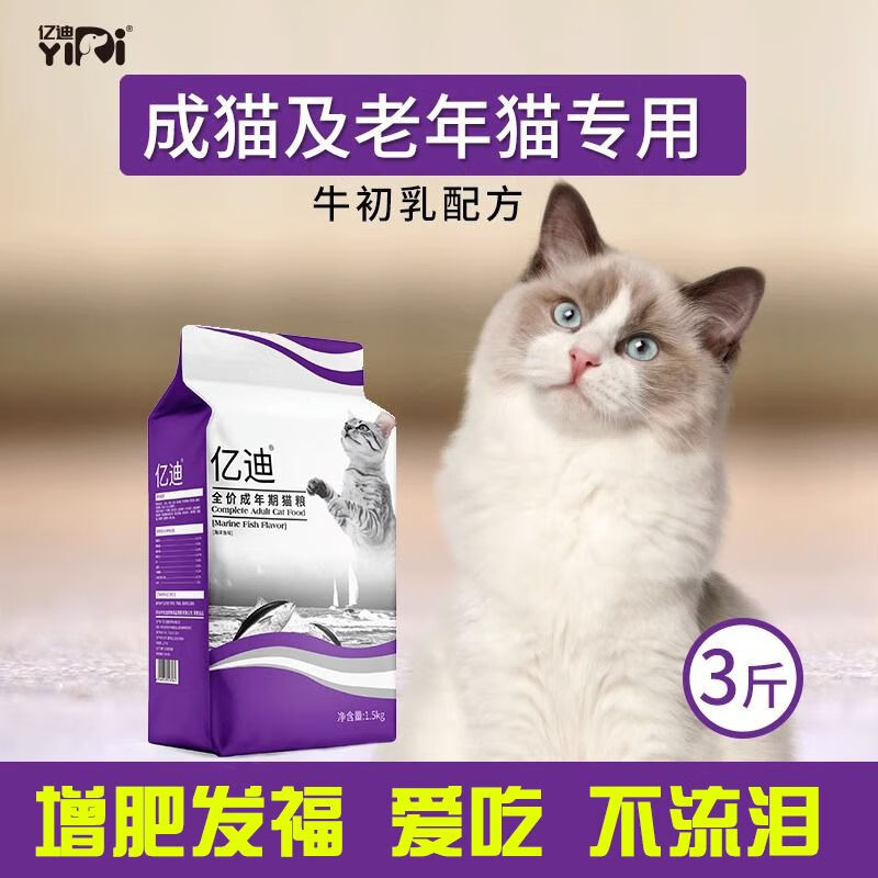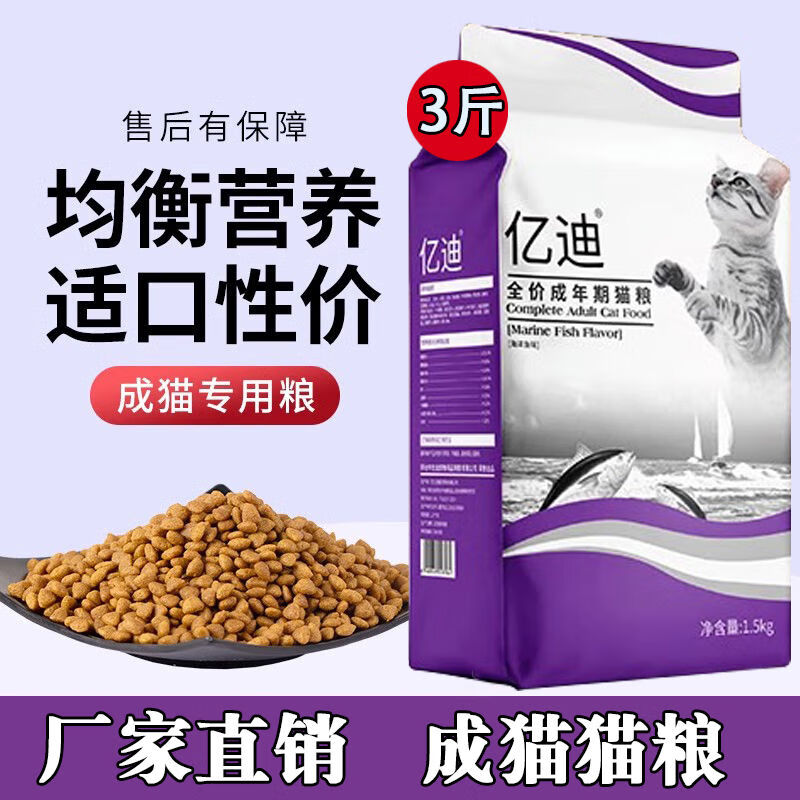 亿迪猫粮猫咪猫粮成年猫幼猫1到12个月通用型全价3斤营养猫食 亿迪3斤成猫粮 1包