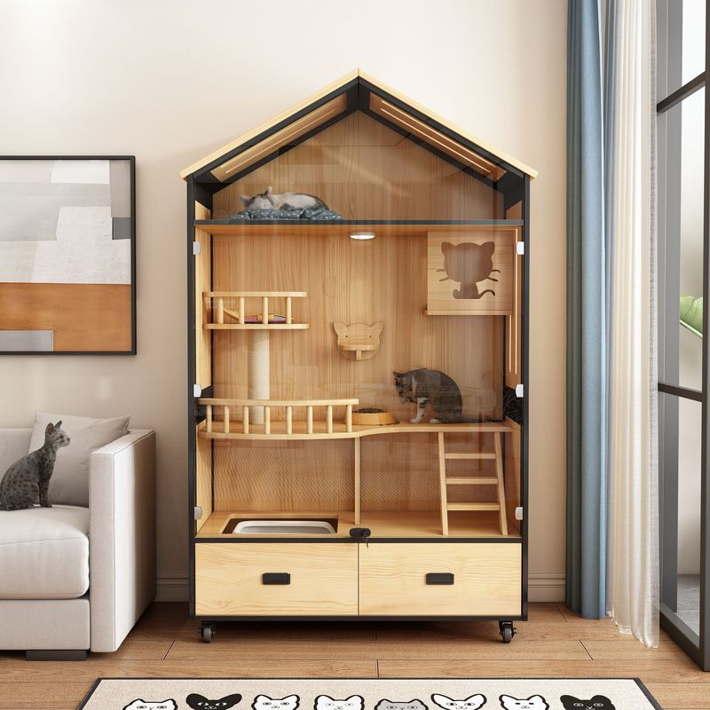 小米城堡家用猫笼子 木质猫笼双猫 别墅全景展示柜子定制玻璃不占地猫房宠 【长60深60高150】带内饰 L-大型
