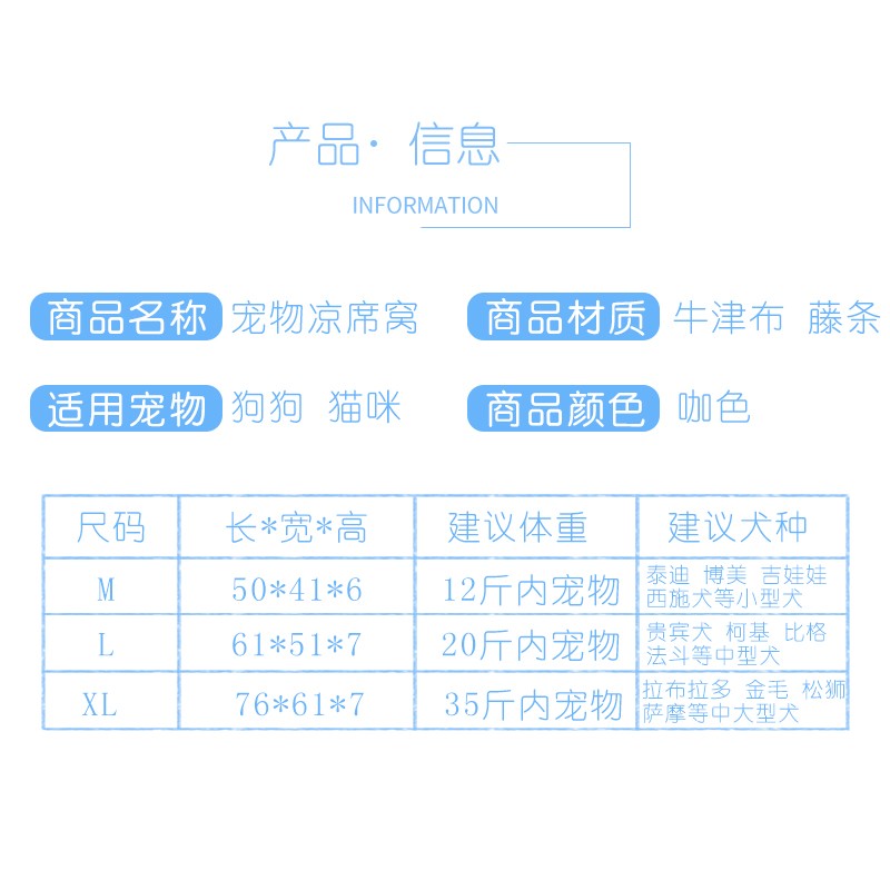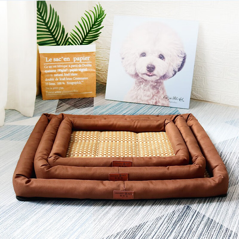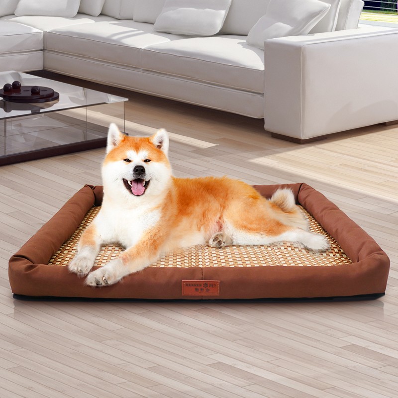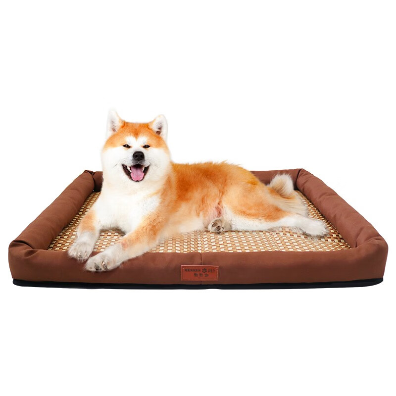 憨憨宠 狗窝猫窝 夏季宠物狗狗窝垫子凉席 金毛贵宾泰迪中型犬狗床狗垫 凉席款啡棕XL码 76*61*7cm