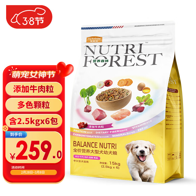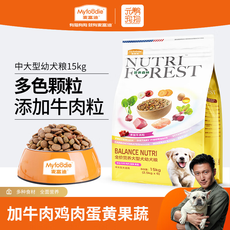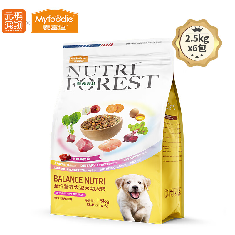 麦富迪营养森林狗粮 小中大型犬柯基拉布拉多法斗通用型 中大型幼犬粮15kg