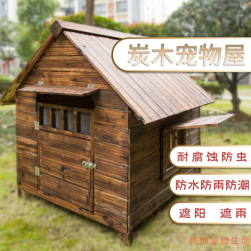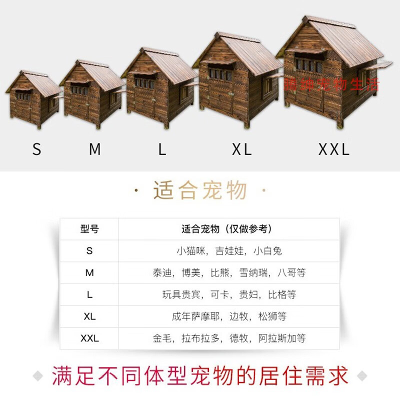 润逸达(RUNPET)狗屋木制狗窝四季通用户外防雨宠物窝室内外狗房子狗舍保暖猫屋窝 无门无窗 XXL号(体长小于110CM的宠物) 碳木色
