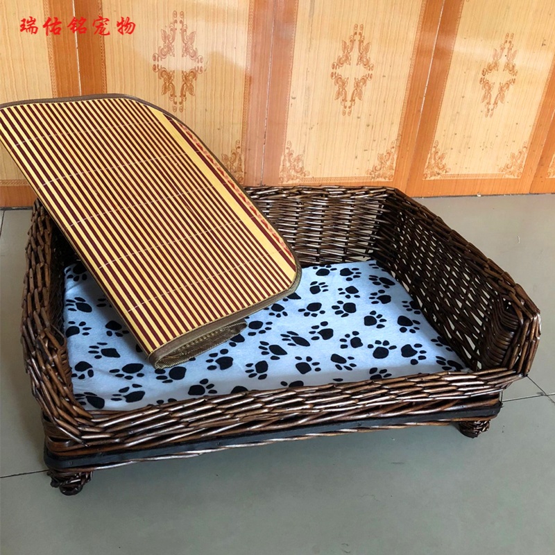 飞嘟乐 狗窝冬天保暖垫藤编狗房夏季四季通用藤编狗窝可拆洗宠物床猫窝金毛泰迪大中小犬四季可用 咖啡色窝 垫子 凉席 三号(体长60cm体25斤以内