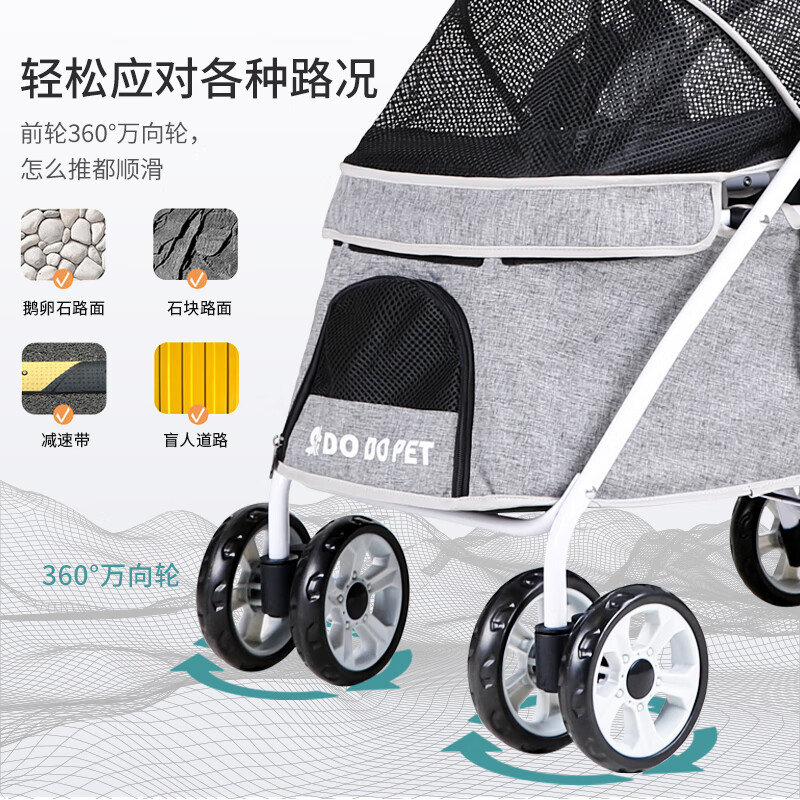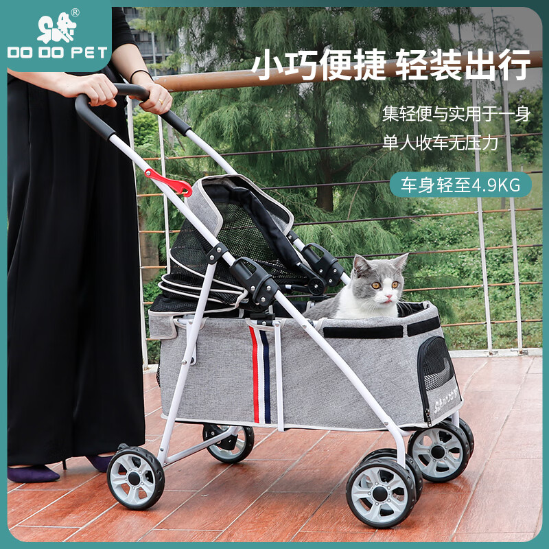 DO DO PET宠物推车轻便可折叠遛狗车中小型犬柯基柴犬狗狗手推车猫咪小推车 蓝色基础款-小巧不占空间-易折叠 建议40斤内宠物使用