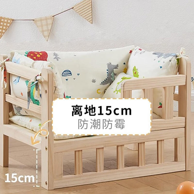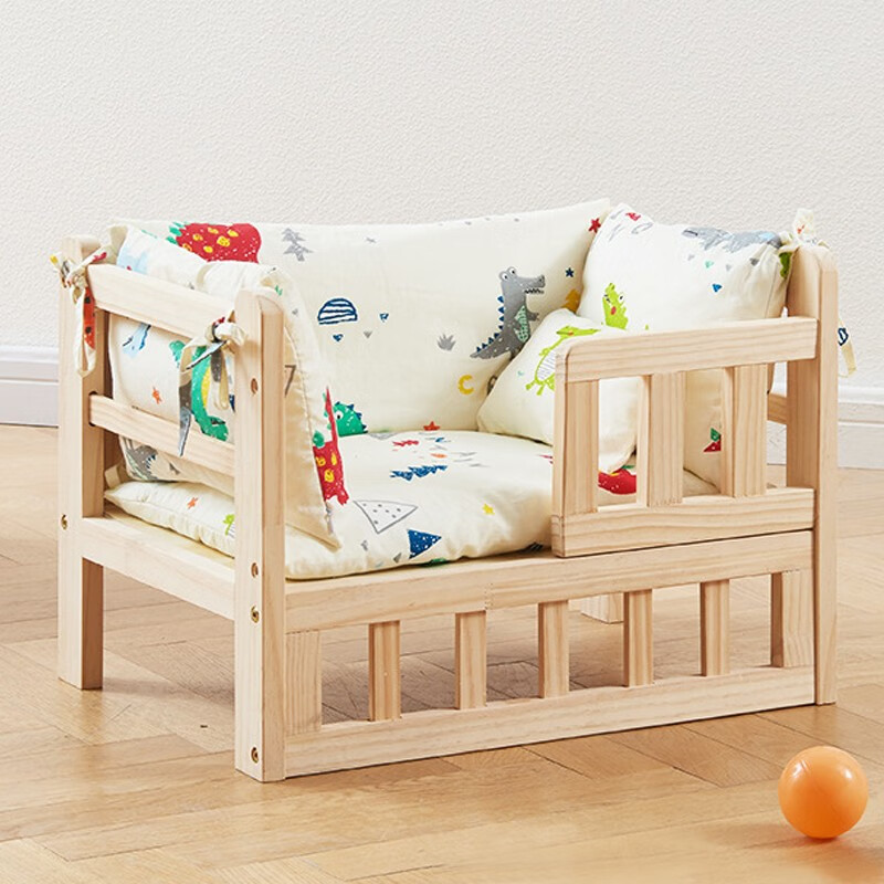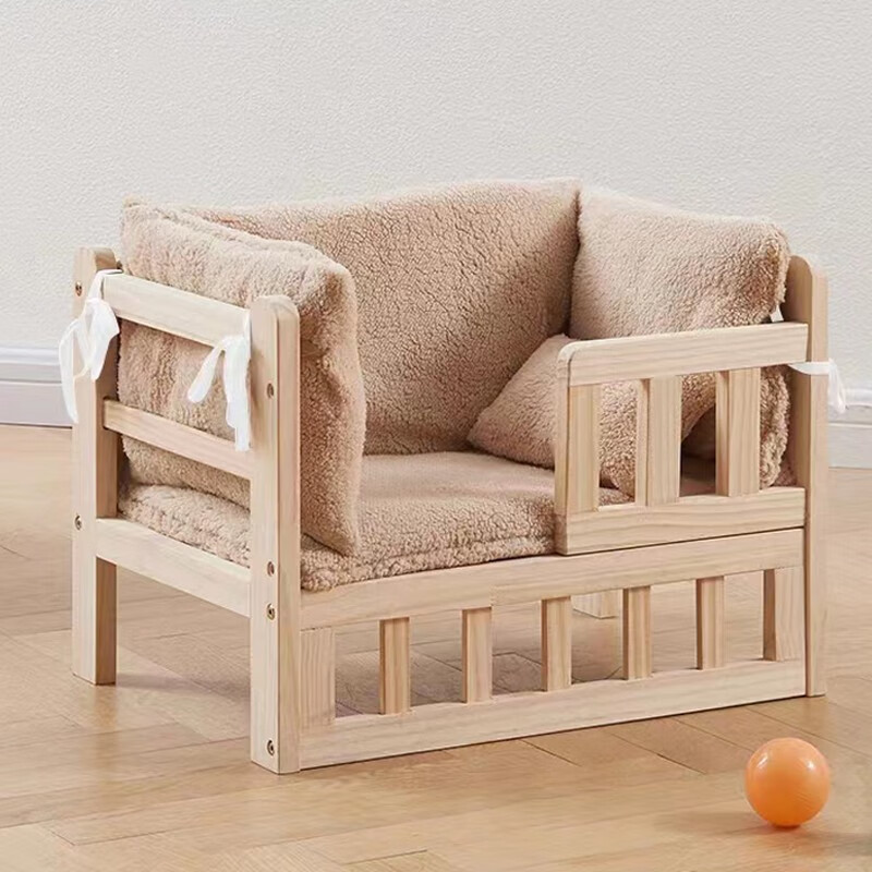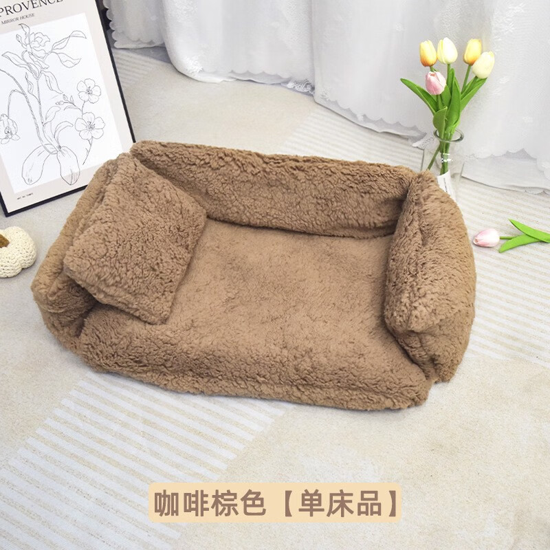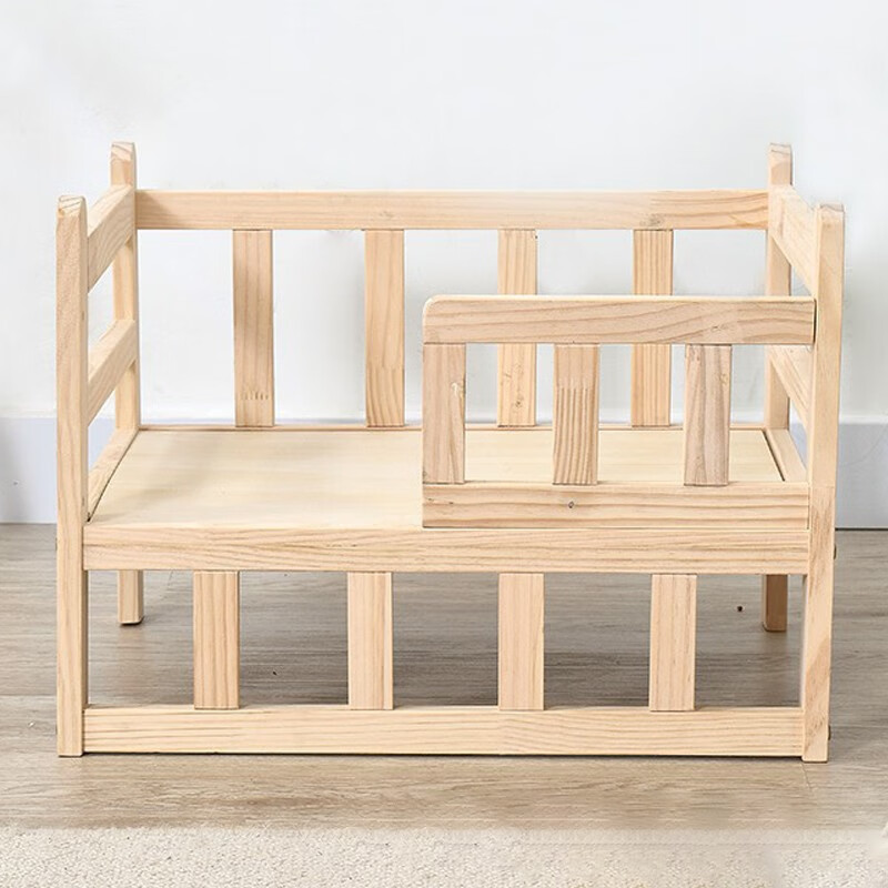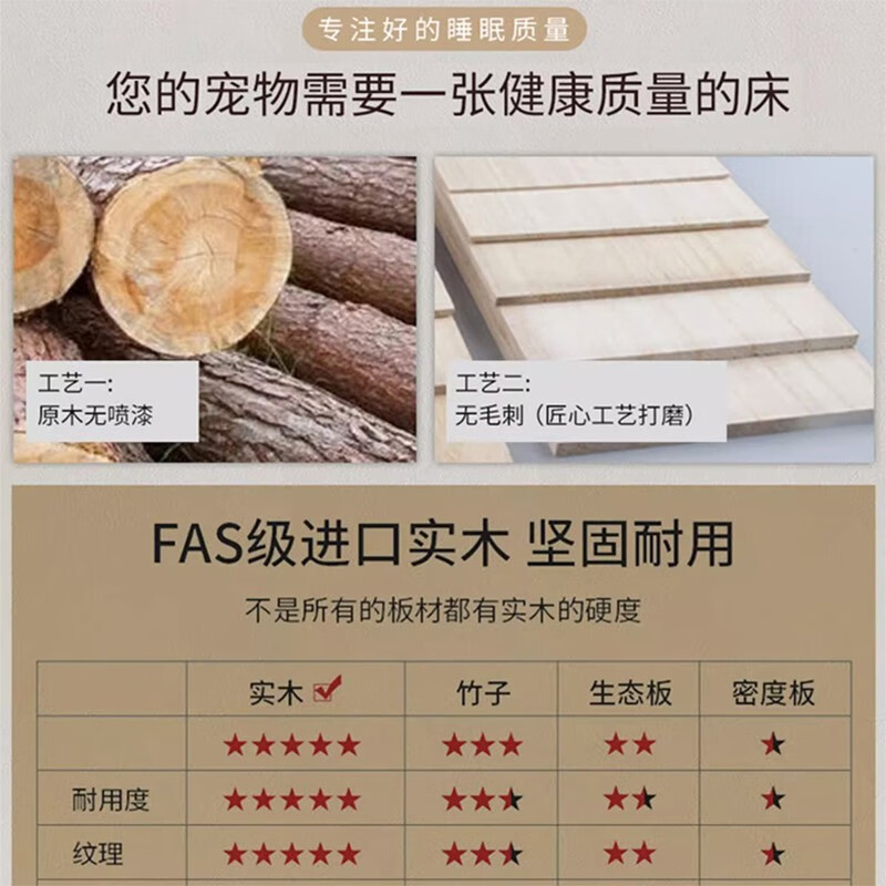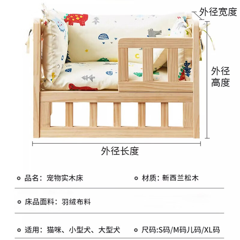 梦舒雅宠物床实木 猫狗床离地四季通用猫窝猫床冬天保暖宠物床泰迪比熊 棕色护栏款 床品 S号 建议10斤内