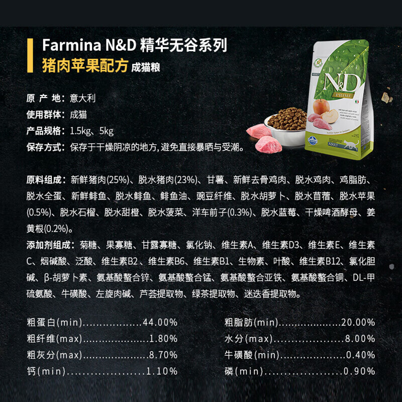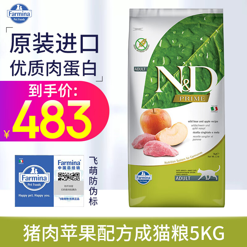 法米娜猫粮Farmina 法明娜意大利原装进口成猫幼猫猫粮宠物猫主粮 猪肉苹果成猫粮5kg