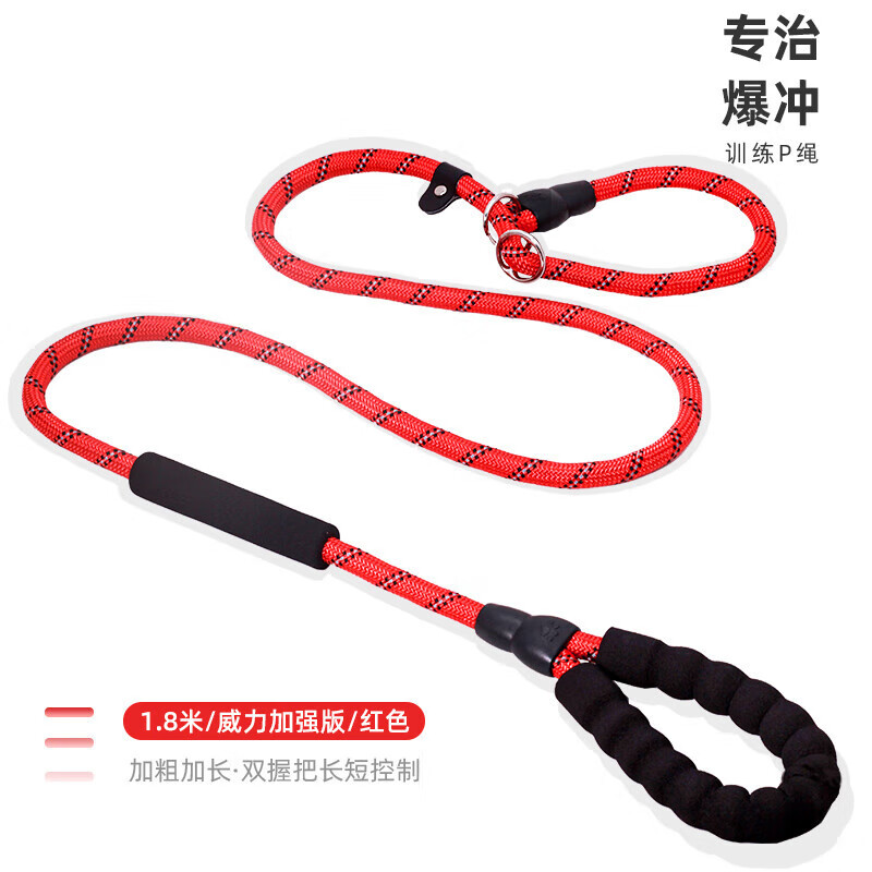 元族狗绳训犬p链防爆冲遛狗绳拉布拉多狗链中型犬p绳大型犬狗狗牵引绳 1.8米/威力加强版/红色 S-小型犬/加粗加长