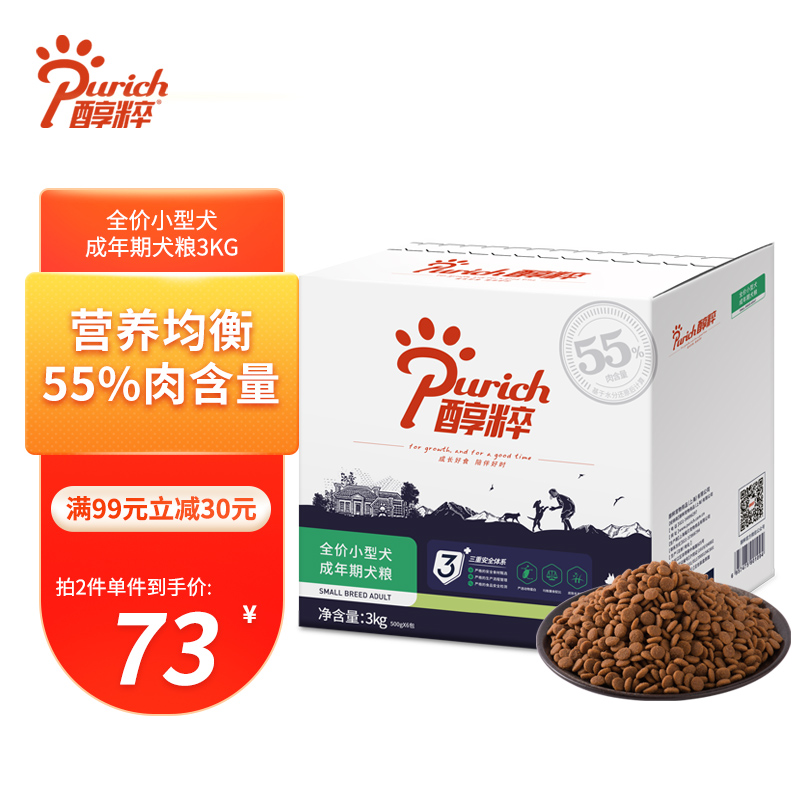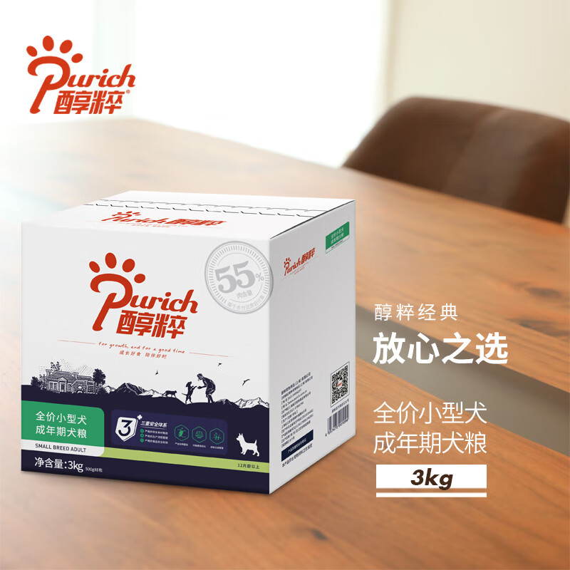 醇粹 狗粮 小型成犬粮 泰迪博美比熊柯基 狗粮通用 动物蛋白 膳食纤维 均衡营养 全价天然粮 3kg