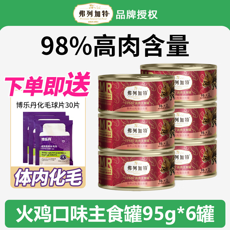 弗列加特猫罐头湿粮 PMR生骨肉猫咪主食罐成幼猫通用型 美国火鸡罐头95g*6