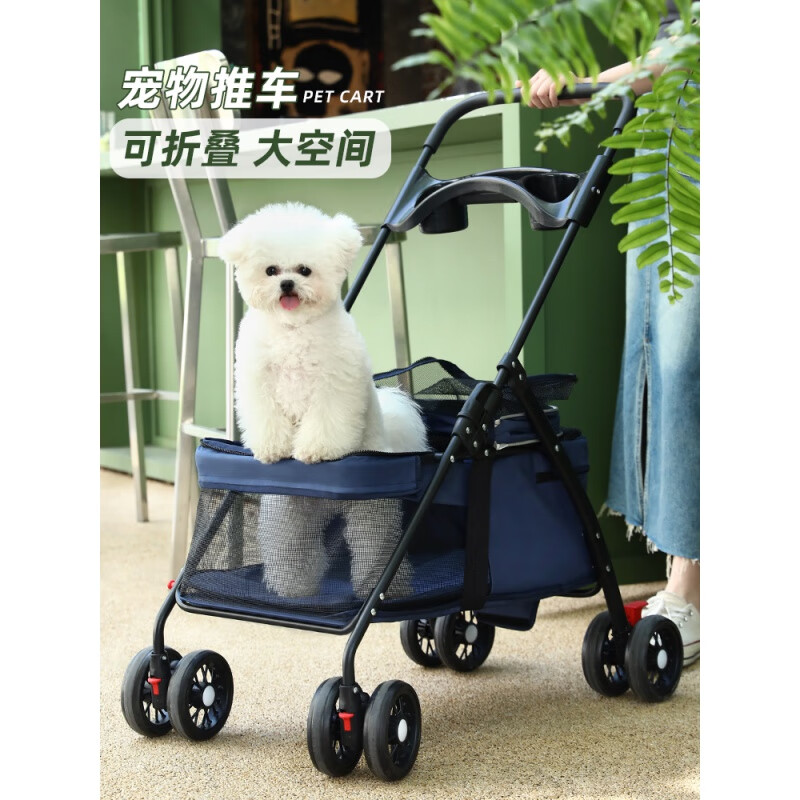 兰叙宠物推车狗狗外出代步小拉车小狗手推车遛狗车小型轻便可折叠猫咪 蓝【可承重30斤】