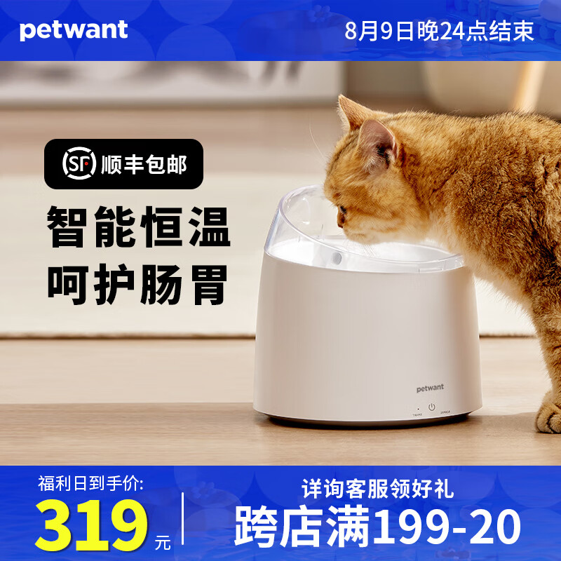 派旺(PETWANT)猫咪饮水机恒温加热宠物狗狗自动循环流动喝水智能杀菌喂水器 春笋(派旺白)-加热款 滤芯5片